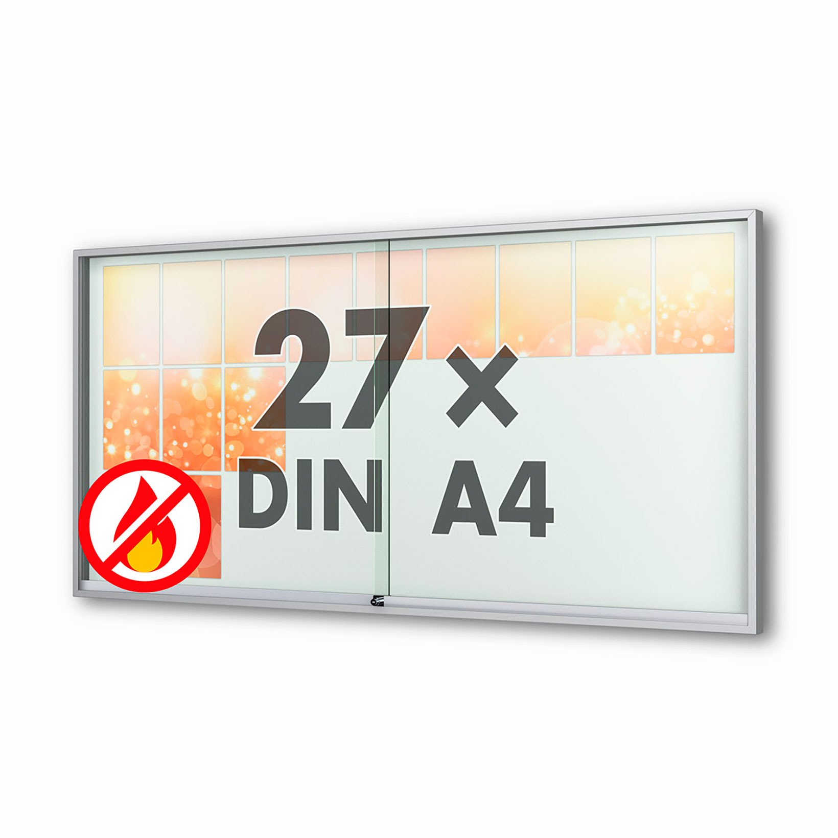 Plakatvitrine: | Brandschutz, Montageort: Innen, Wandmontage, abschliessbar, mit Schiebetüren |